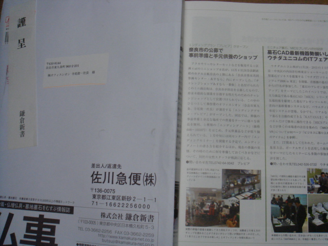 鎌倉新書という仏事関係の書籍を取り扱っている出版社の月刊誌にとりあげられました