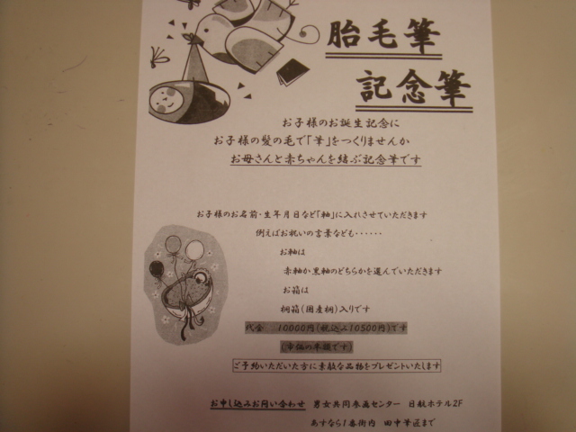 また、生まれた赤ちゃんの髪の毛で作る記念の筆もつくれます